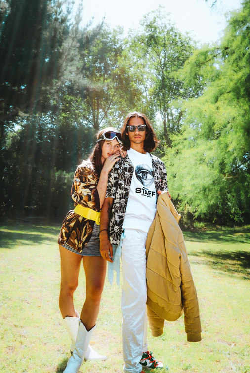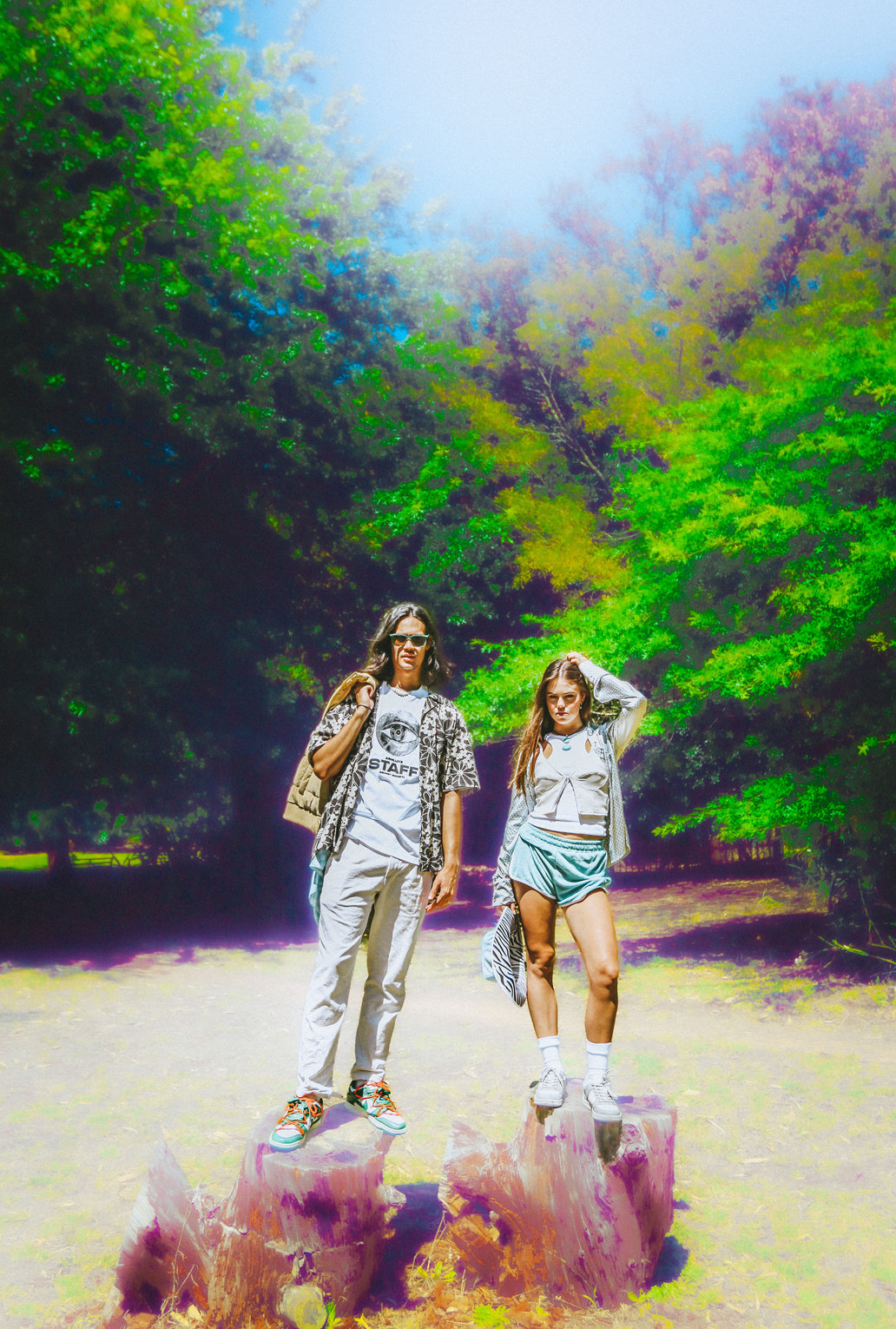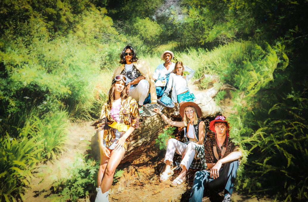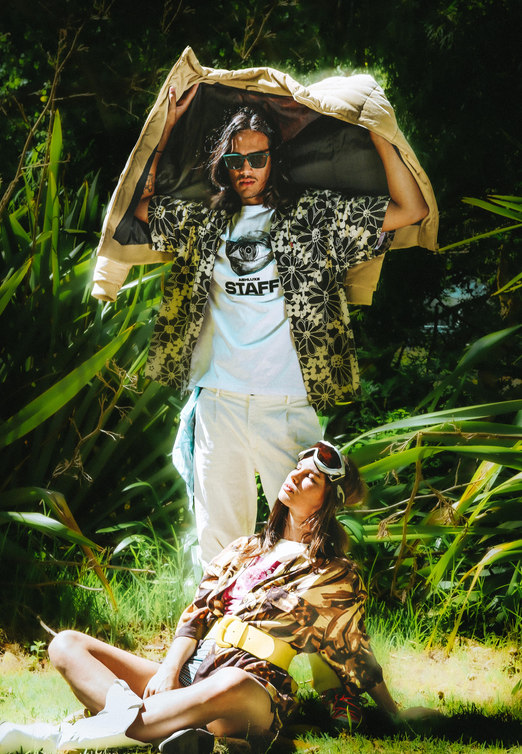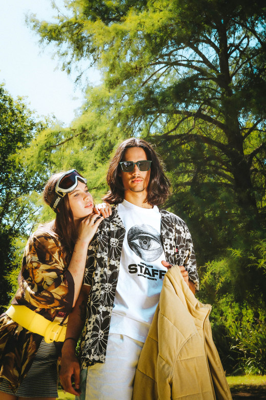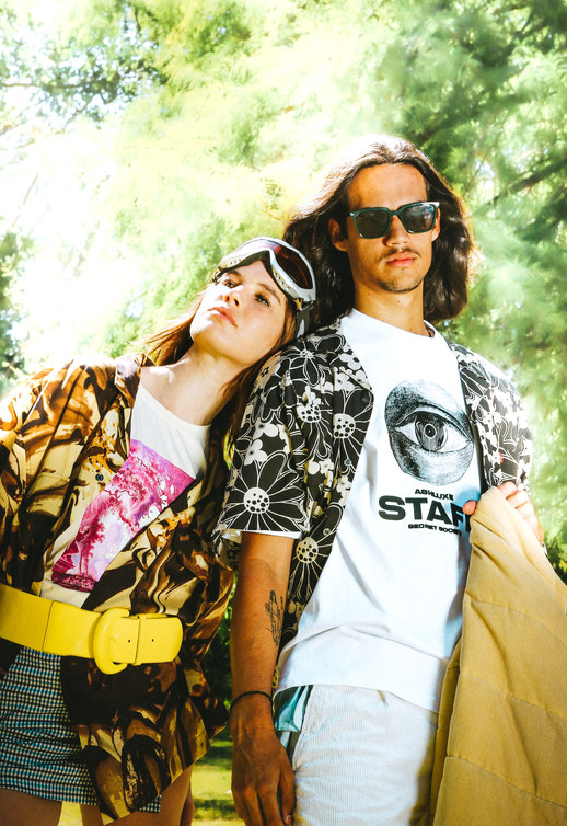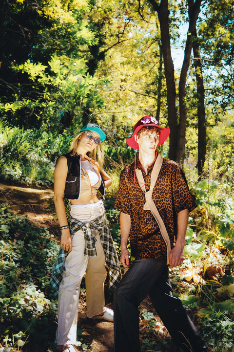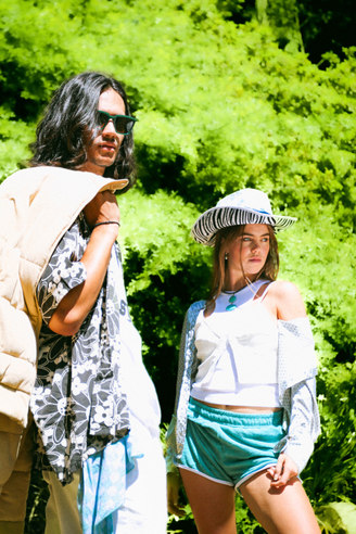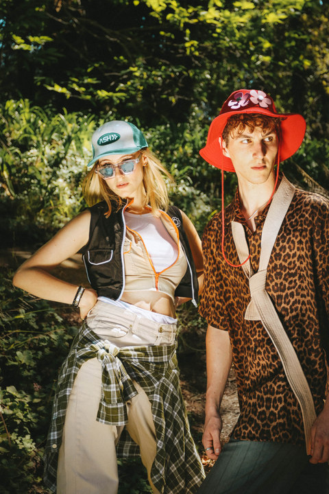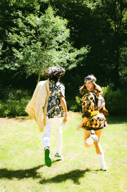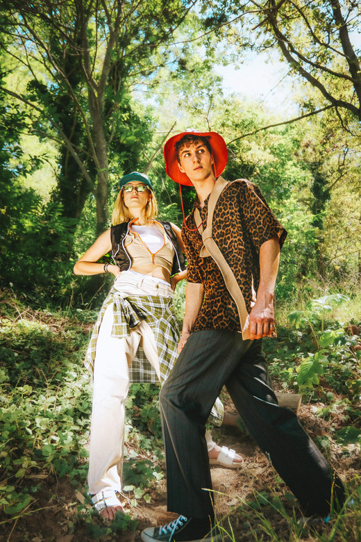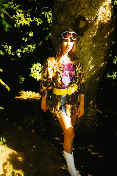 Nature is seen as a muse, space and inspiration for Zoë, here she juxtaposes the disruptive, bold graphics of the Perks & Mini styling with the peace of a natural space.