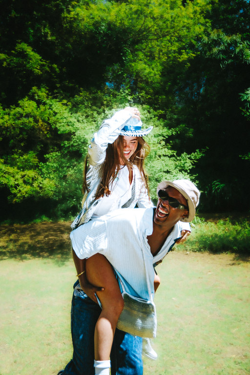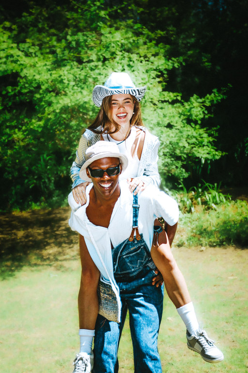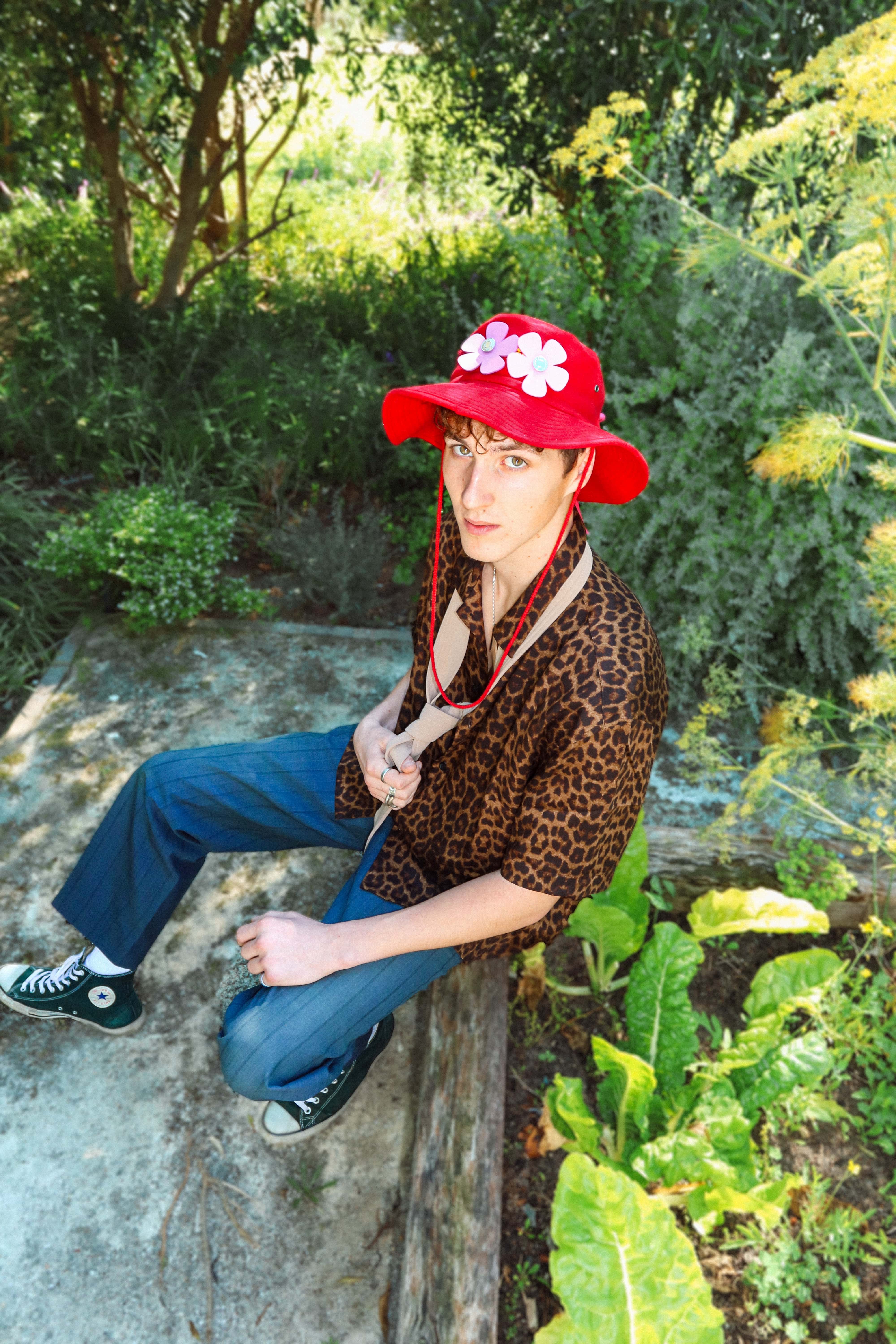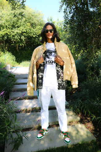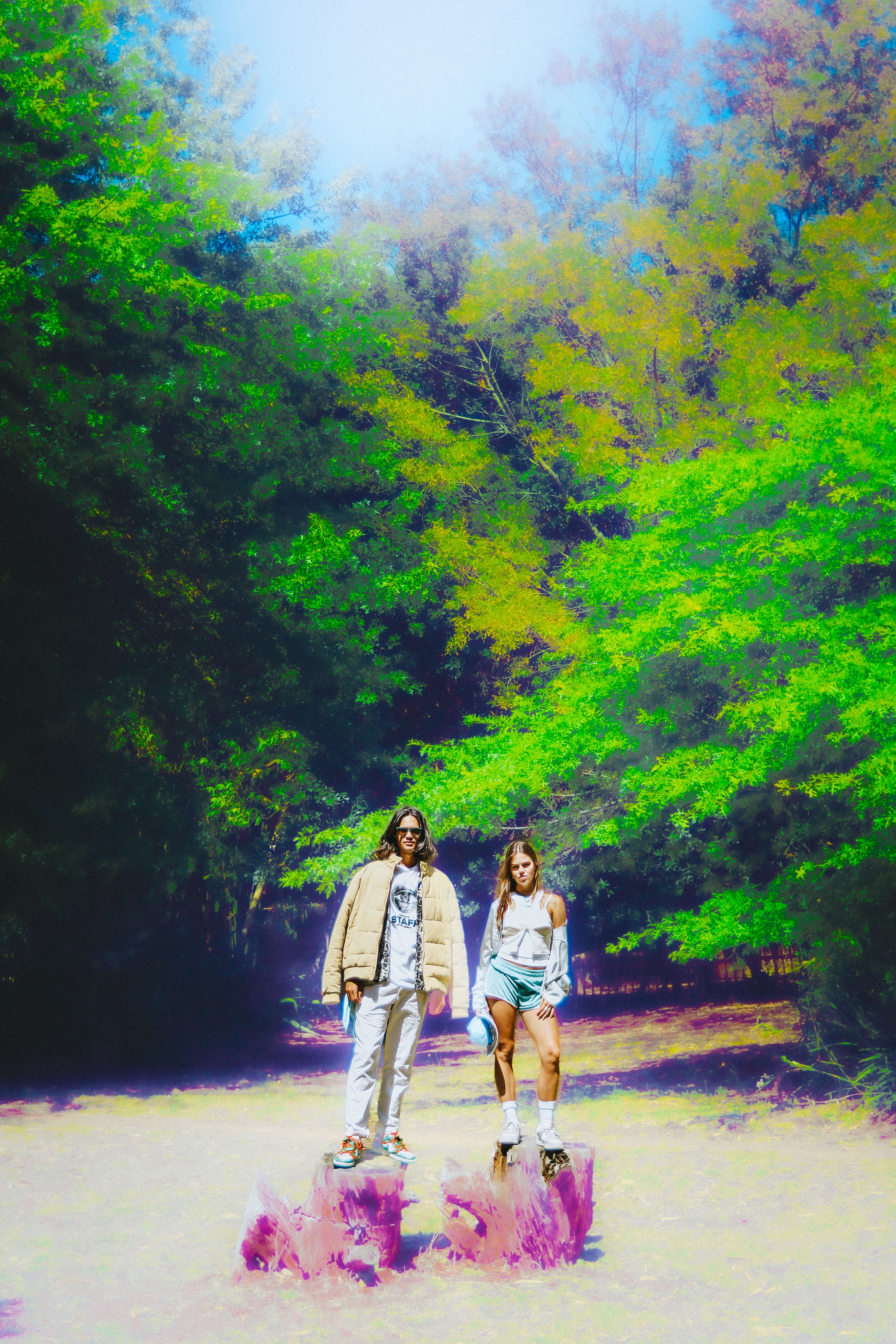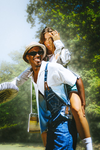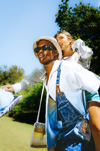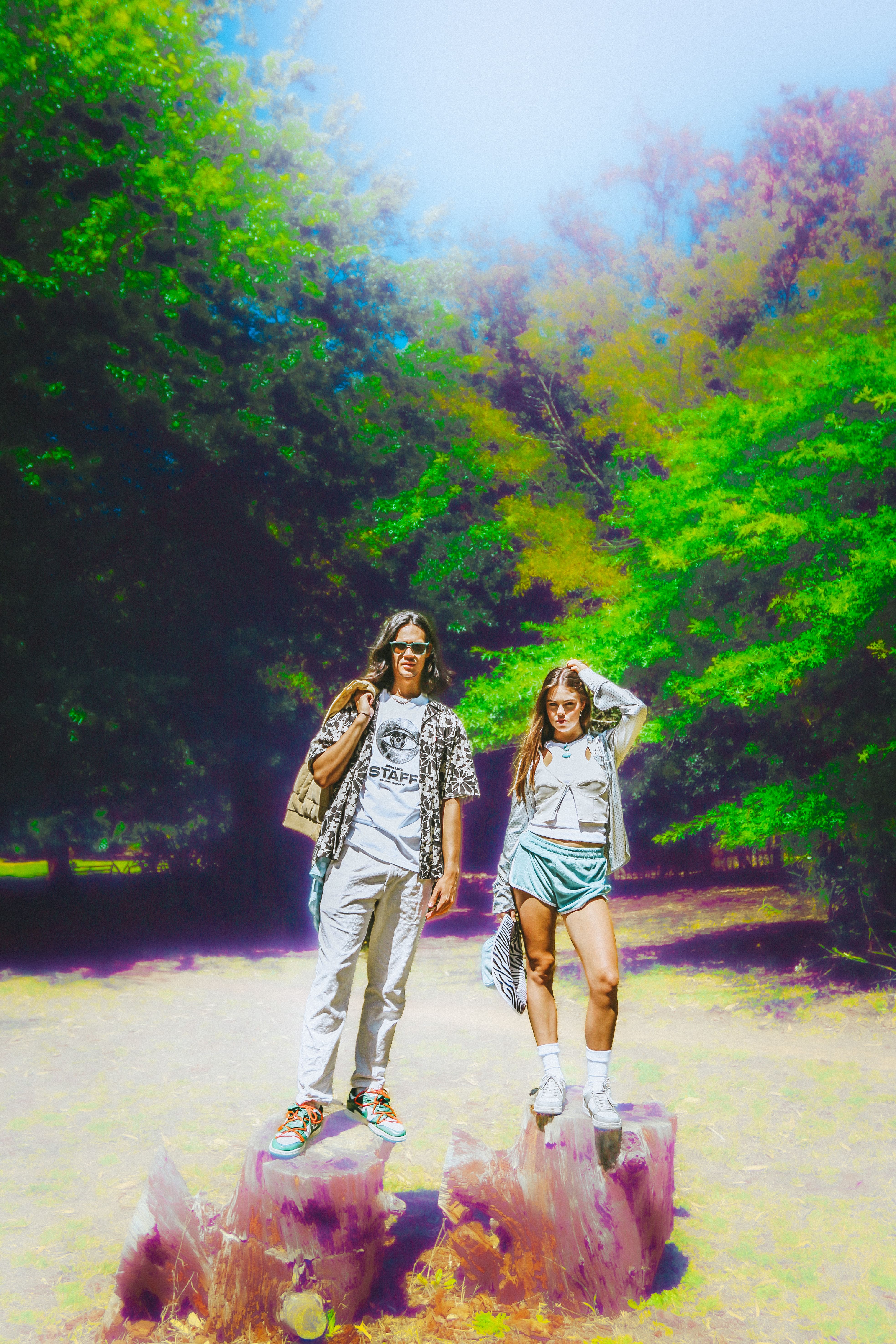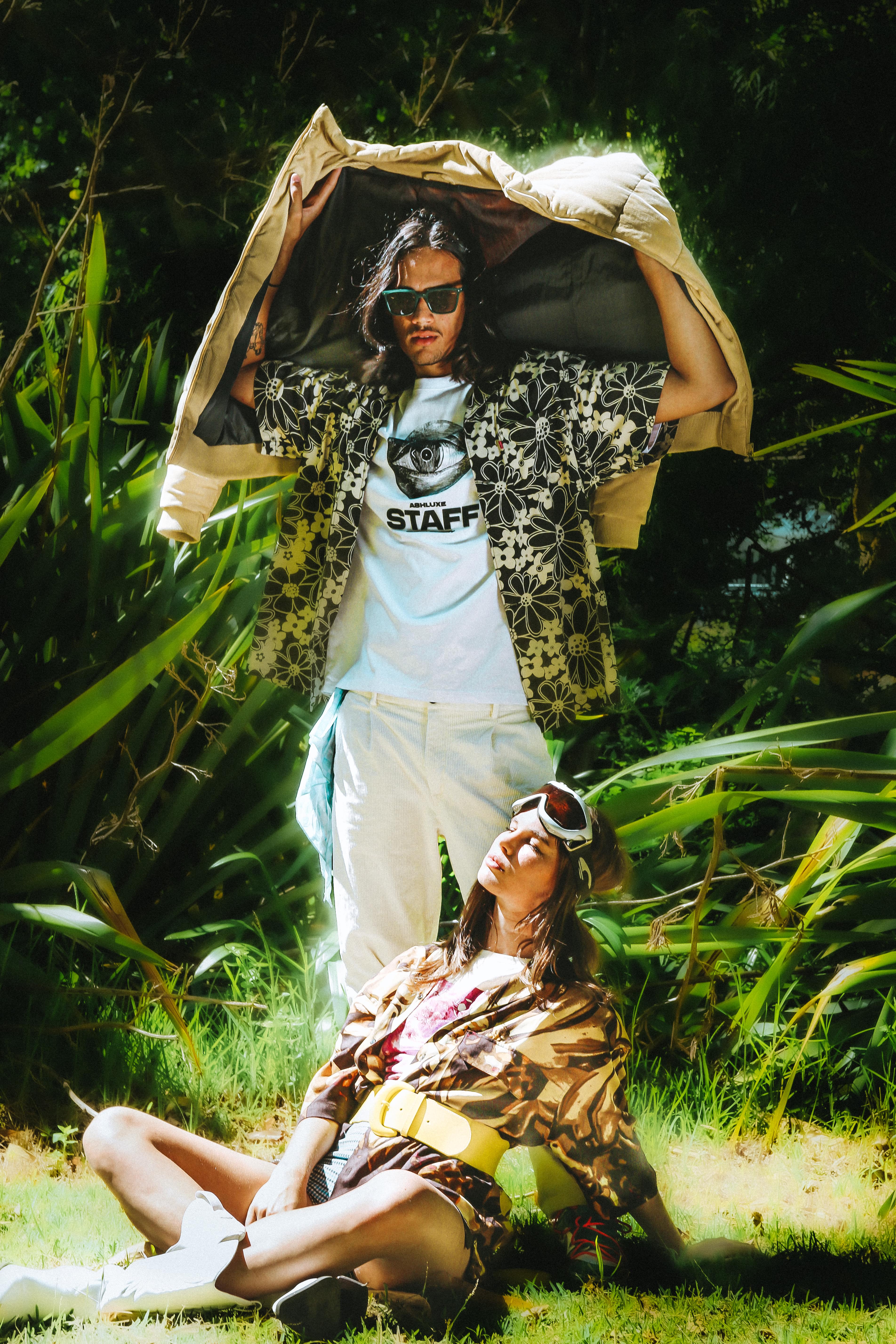 Nature is seen as a muse, space and inspiration for Zoë, here she juxtaposes the disruptive, bold graphics of the Perks & Mini styling with the peace of a natural space.